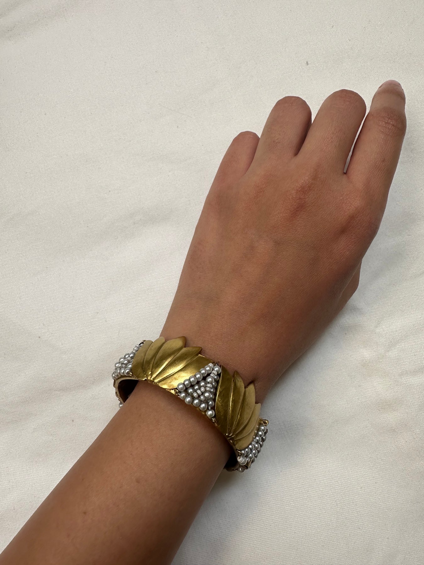 Gold dipped bangle is handcrafted in India with alloy of silver and jadau charms on it. This bangle is in size 2.3 and is openable. Price mentioned is of a single piece.