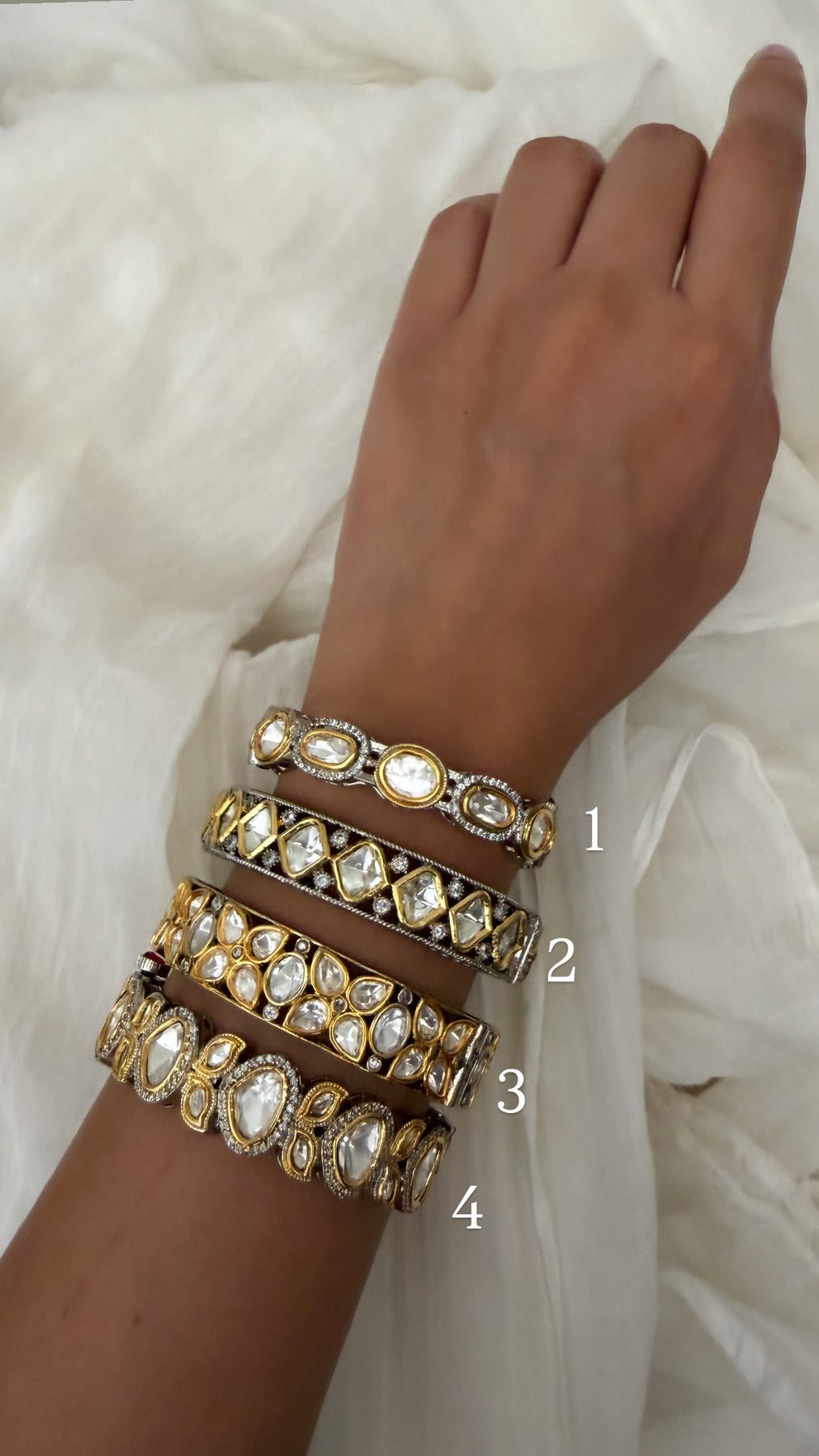 Handcrafted in base metal and white topaz. Openable bangles , come as a single piece.