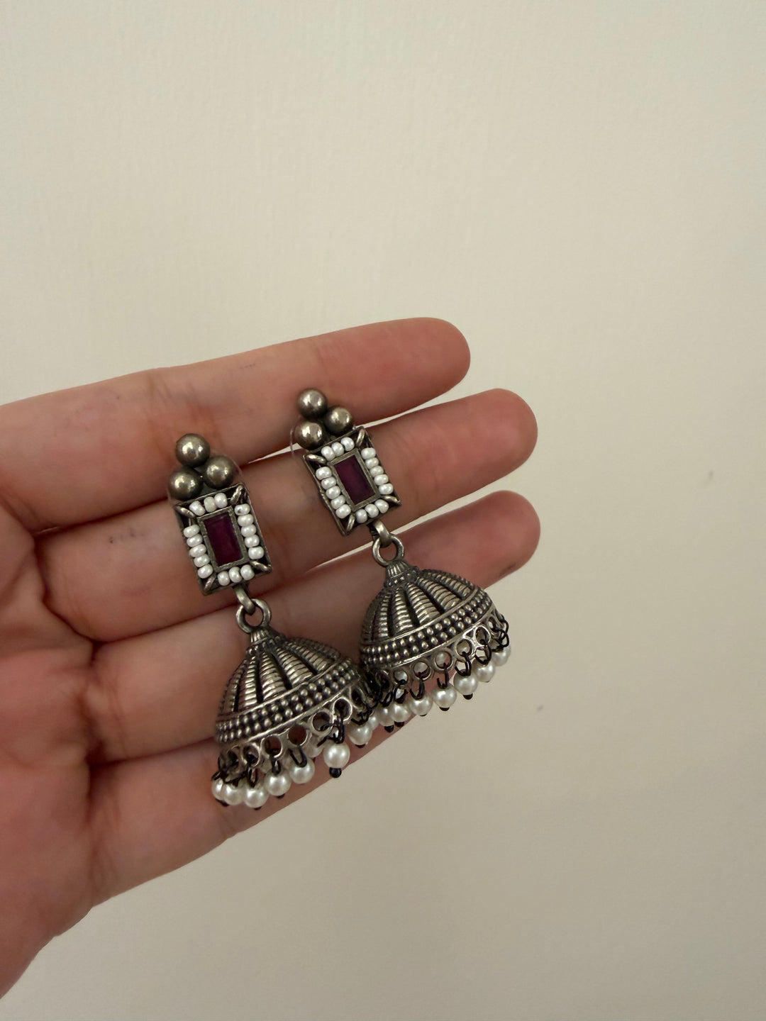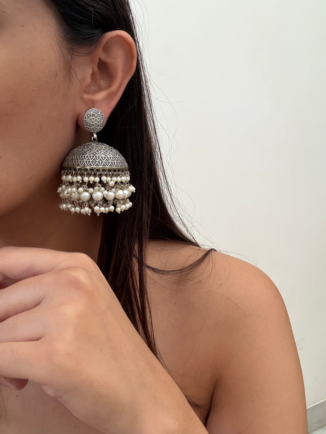 Silver gohar baali earrings