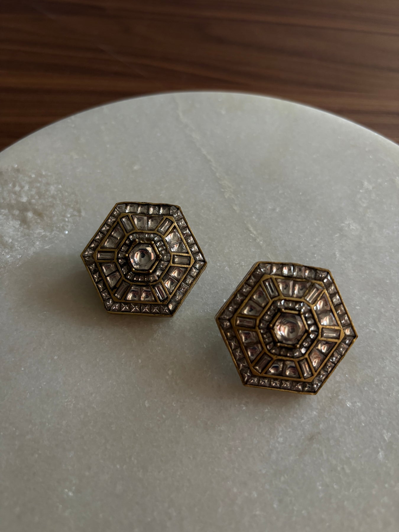 Indulge in the ultimate luxury with these stunning earrings. Handcrafted with an alloy silver and delicately plated in gold, each earring is adorned with ku Dan that adds a touch of glamour to any outfit. Elevate your style with these exquisite earrings.