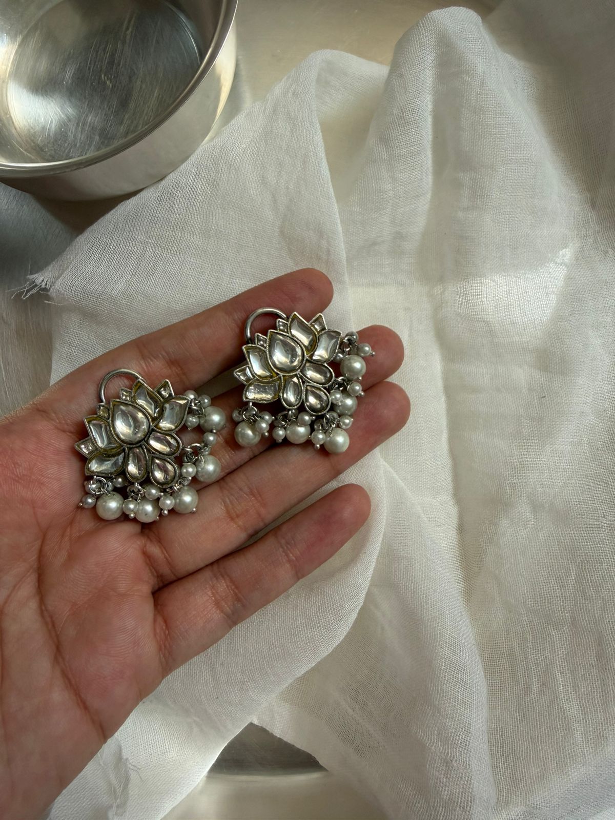 This lotus earrings is meticulously handcrafted from silver with the addition of cultured pearls for an exquisite touch.