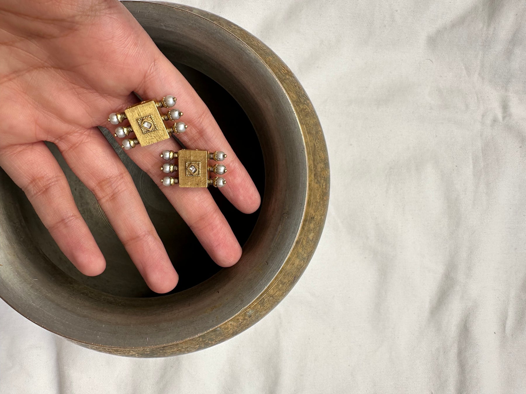 Dipped in gold , handcrafted earrings made in alloy of silver.