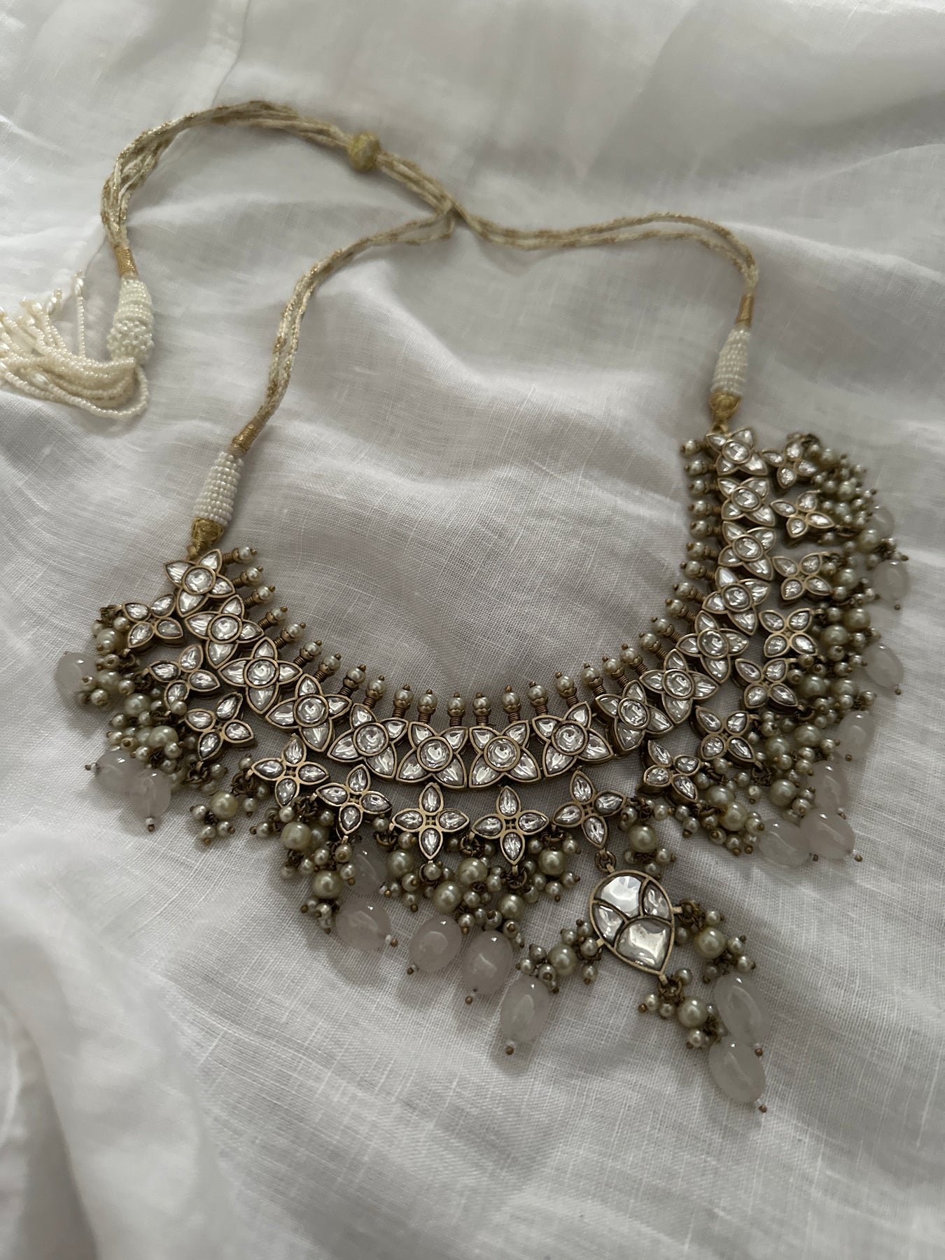 Gold plated traditional Indian bridal necklace made in silver and base metal.