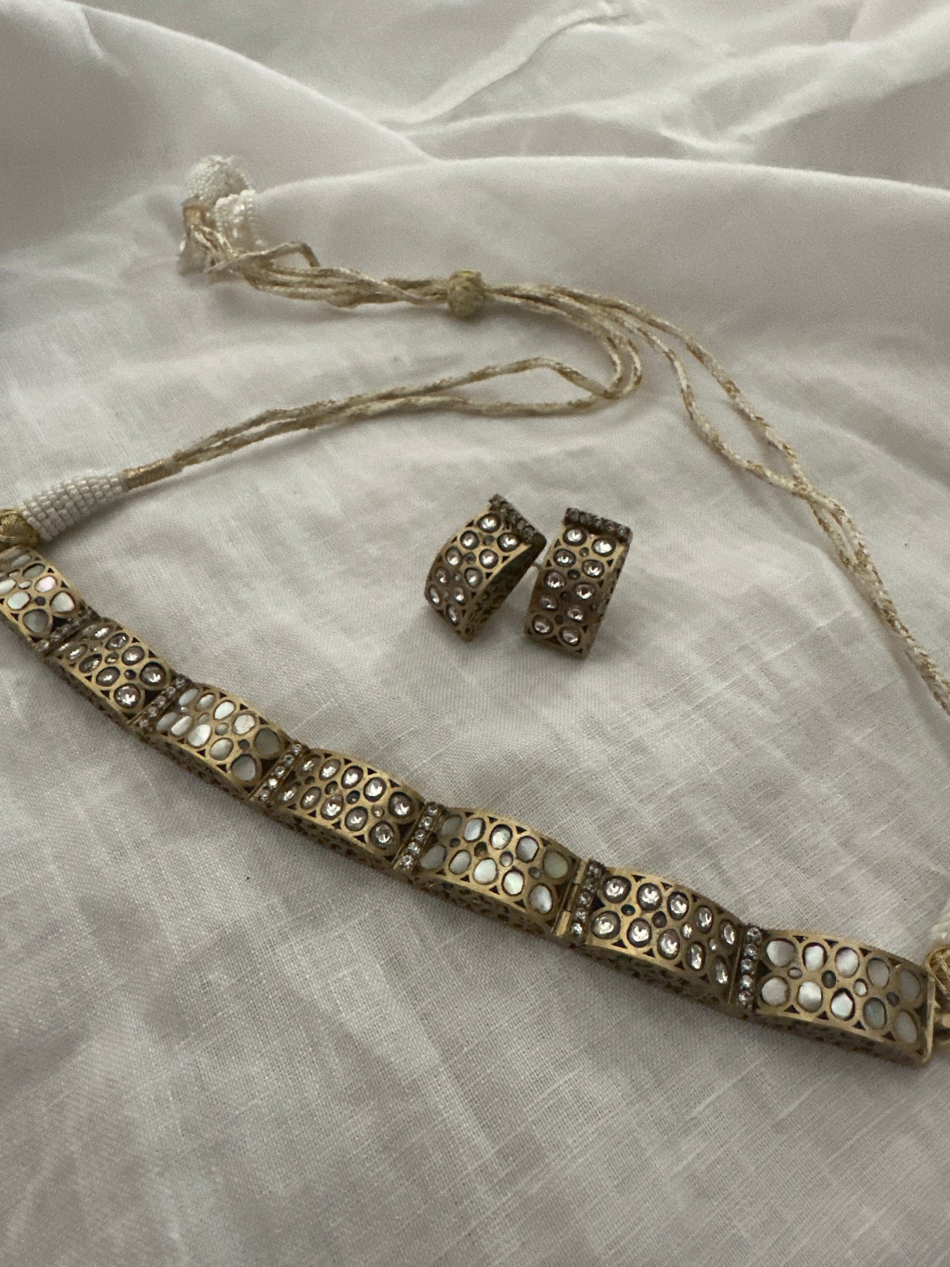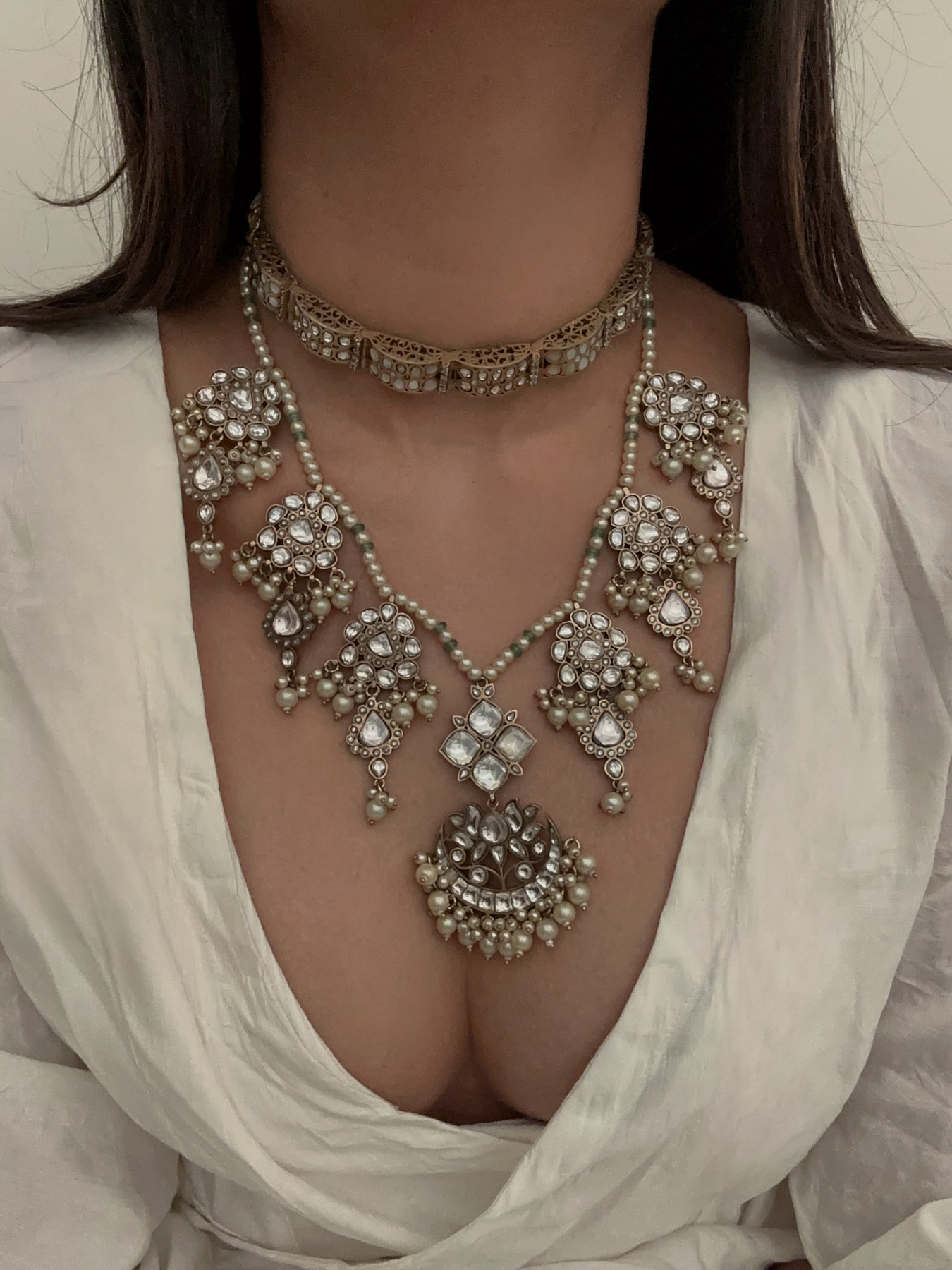 Gold plated traditional Indian bridal choker on the top made in silver and base metal.