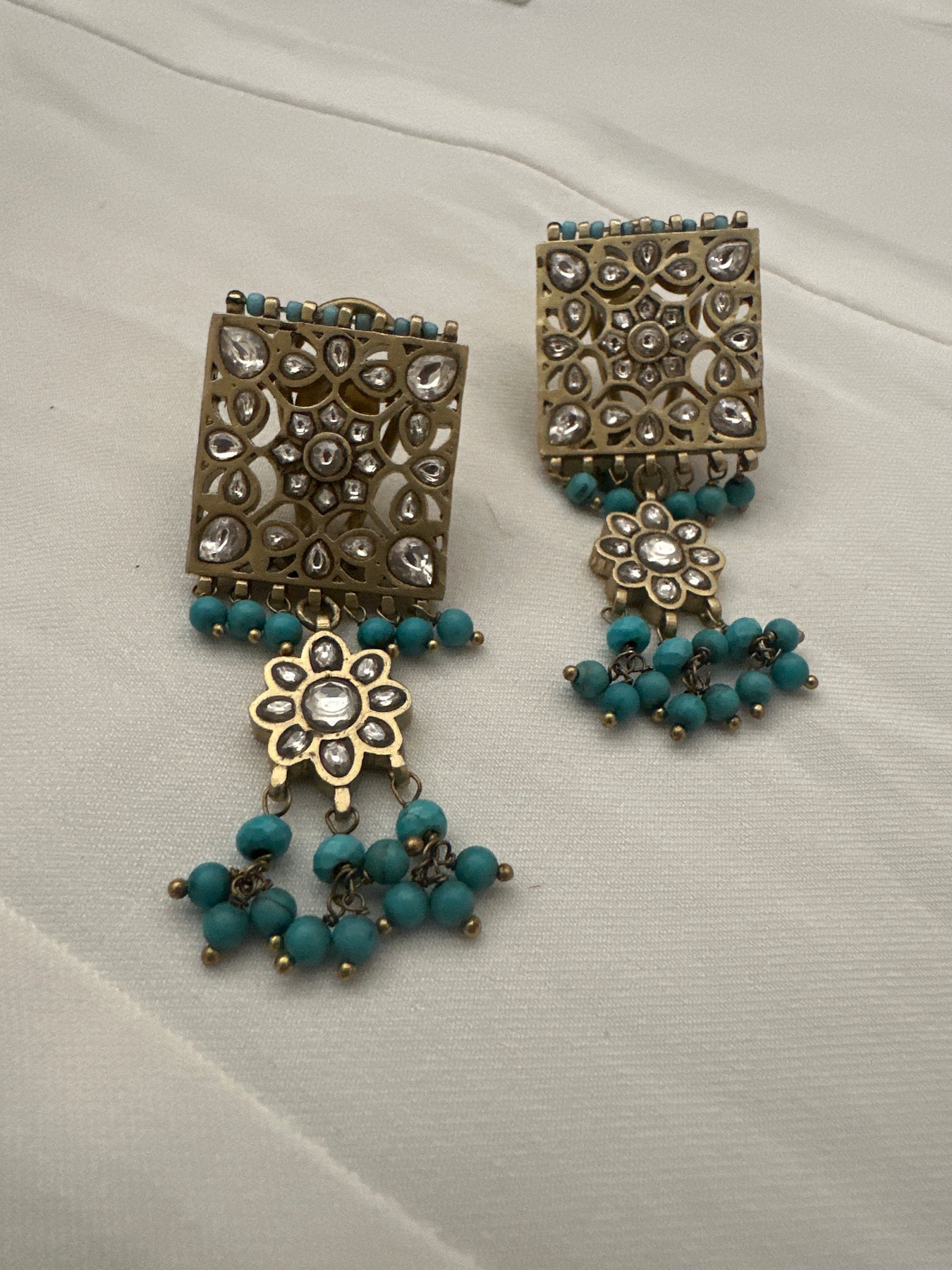 Gold plated traditional Indian bridal necklace made in silver and base metal. Comes with a matching pair of earrings.