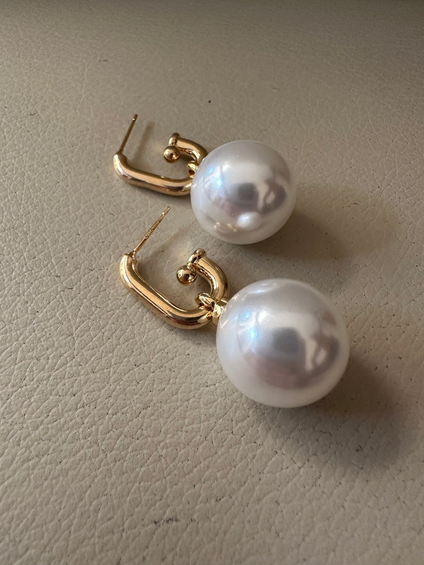 Made in stainless steel with anti tarnish coat. With a chunky ball of cultured pearl.