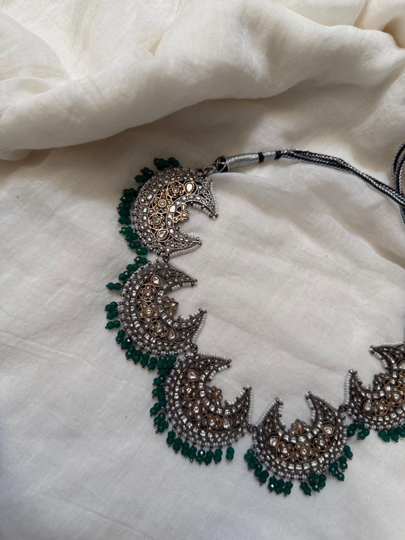 Handcrafted in silver and base metal with green chalcedony and white topaz stones.