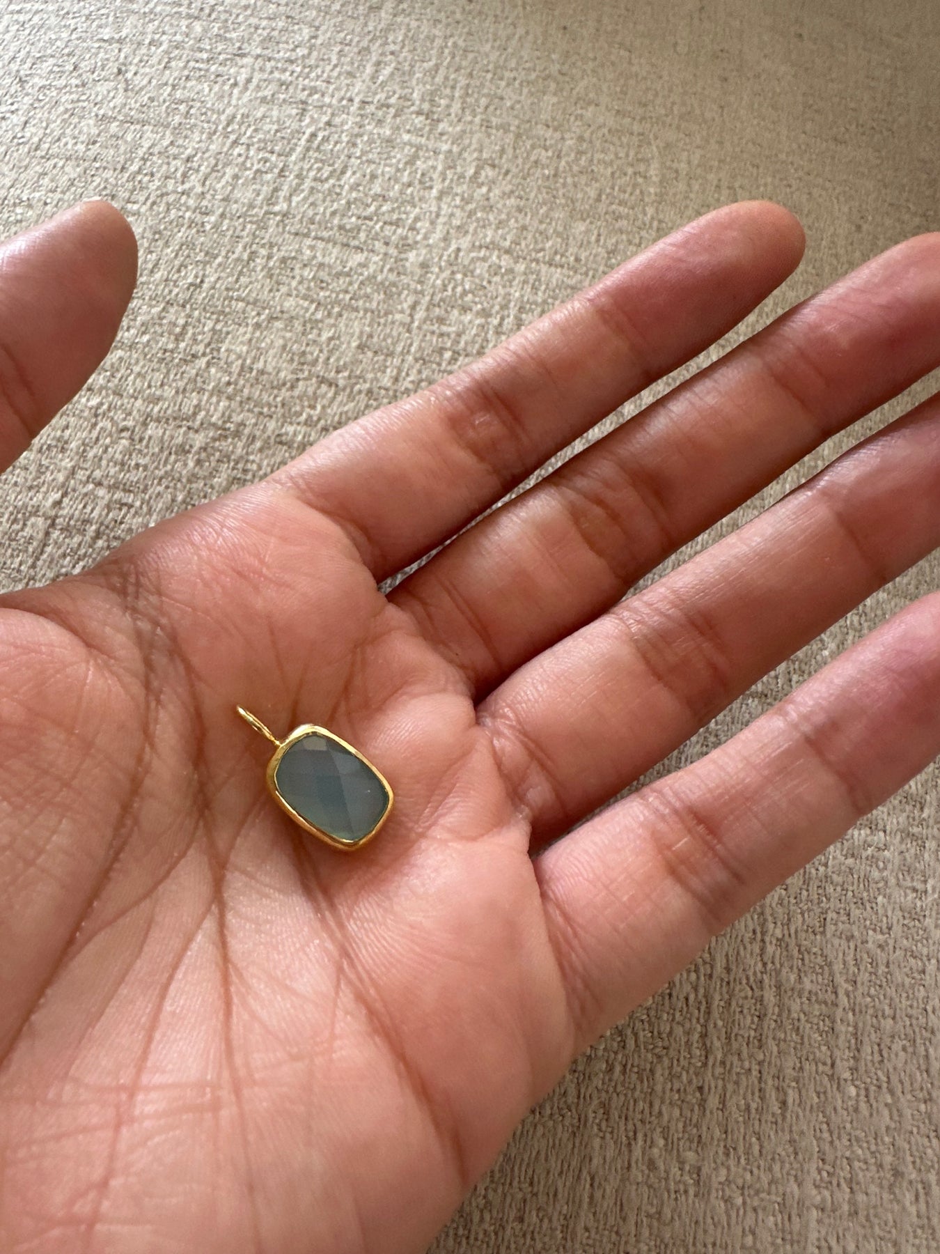 These pendants are all made in semi precious natural untreated stones. The setting is done in 925 silver.Polished in gold.