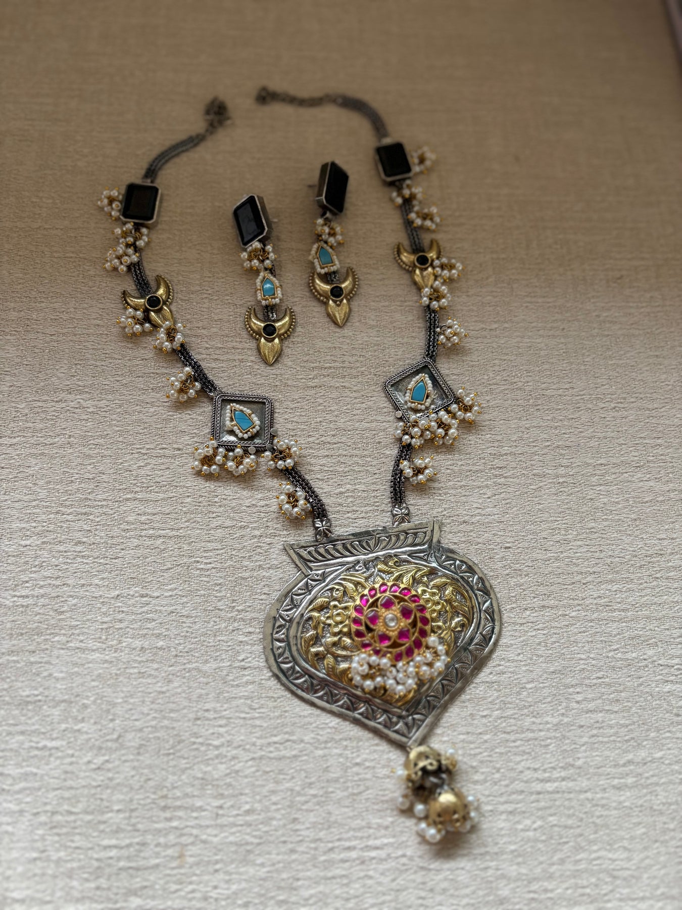 Whether you’re dressing up for a wedding, festive celebration, or simply adding a statement piece to your everyday style, this German silver necklace is the perfect choice.
