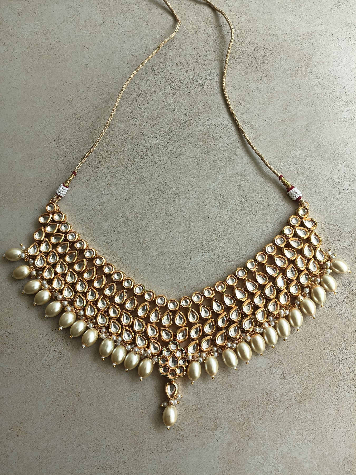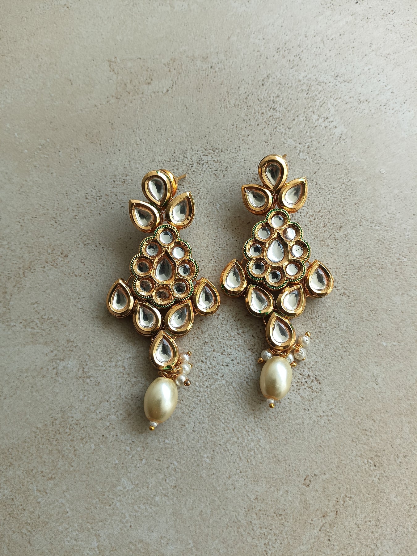 Handcrafted in base metal and polished in gold with cultured pearls / stones.