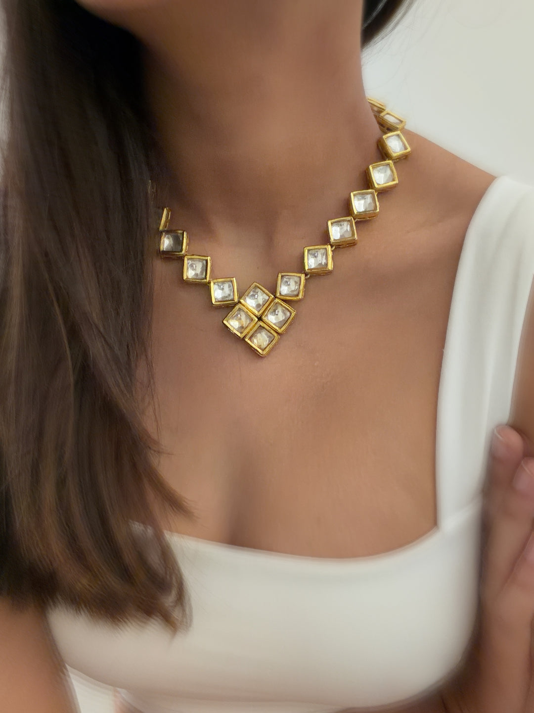 Square polki necklace