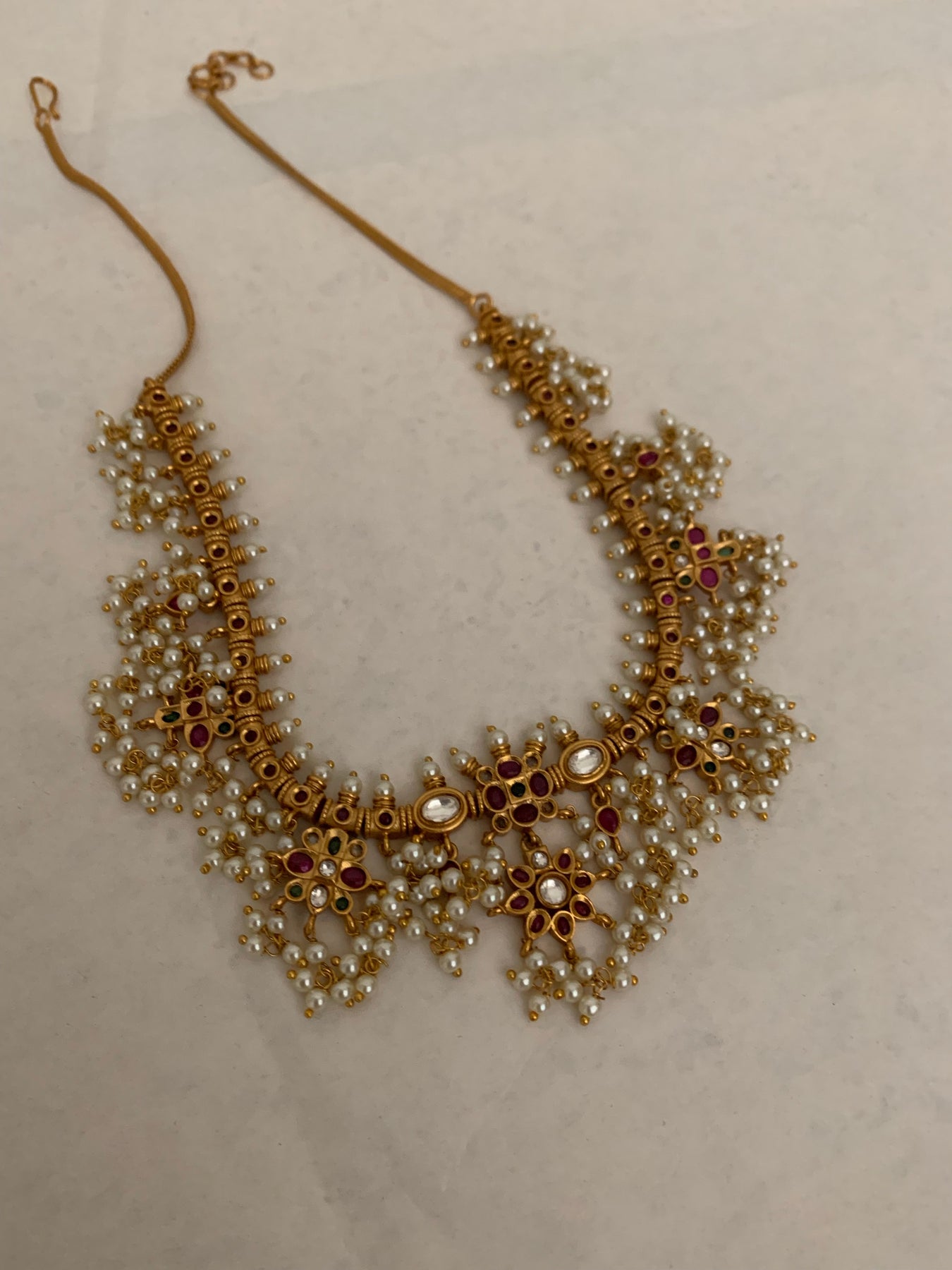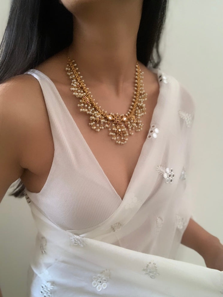 This Arit kanta necklace is expertly crafted from silver and finished with a layer of gold for a luxurious touch. This necklace is the perfect addition to your jewelry collection.