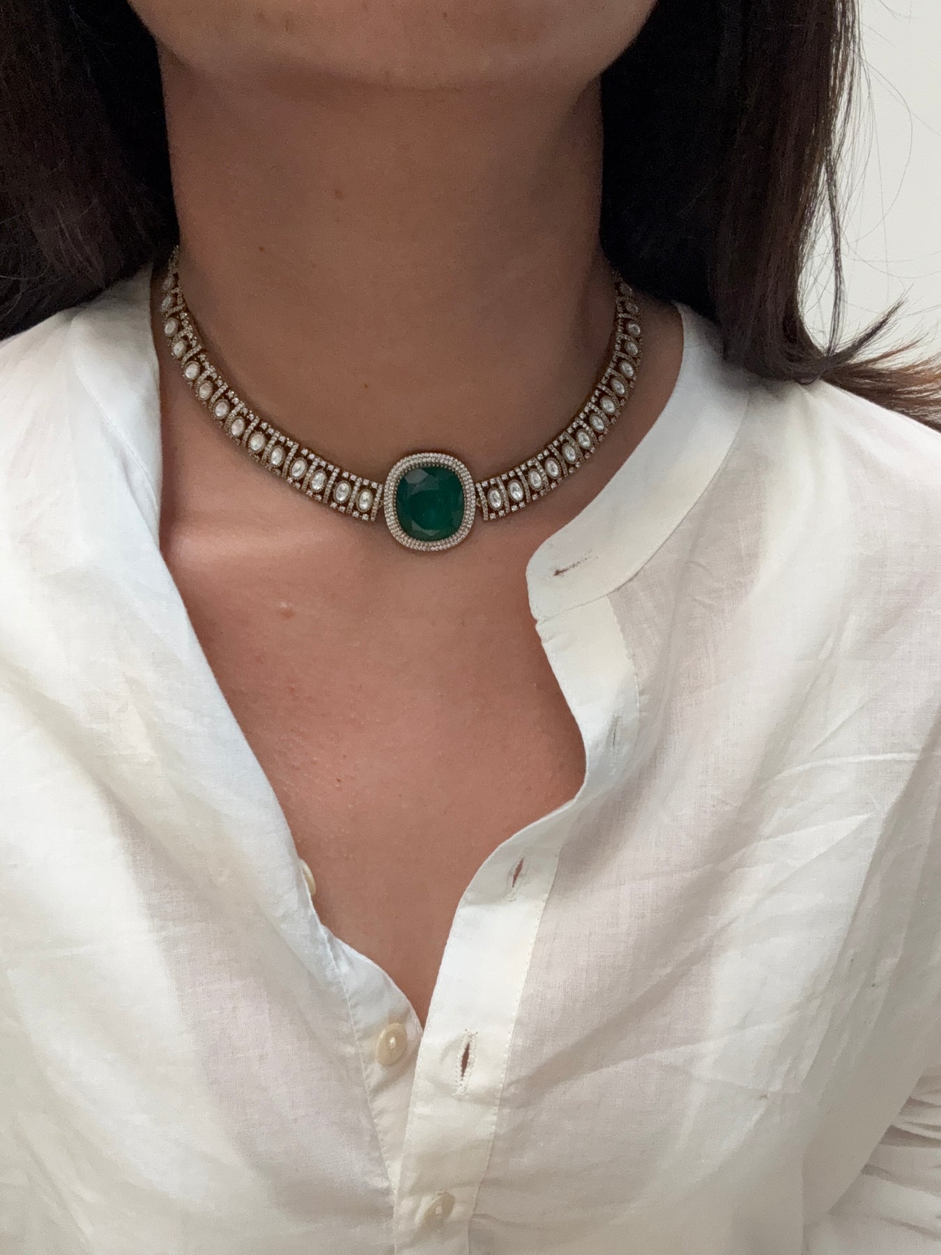 Elevate your elegance with this stunning piece of jewelry. Featuring a clear quartz base that exudes a timeless sparkle, this piece is crafted from a durable silver alloy that adds both strength and shine. The center piece is a captivating green onyx that brings a pop of color and sophistication.