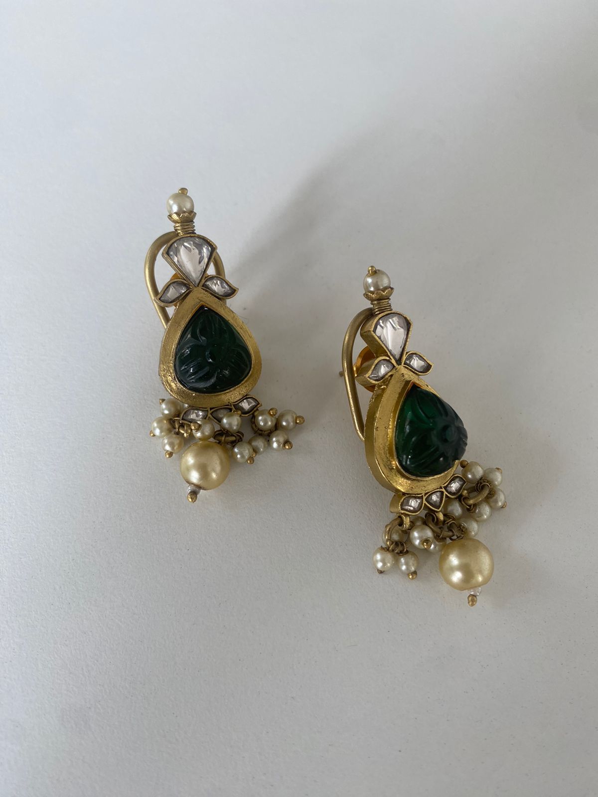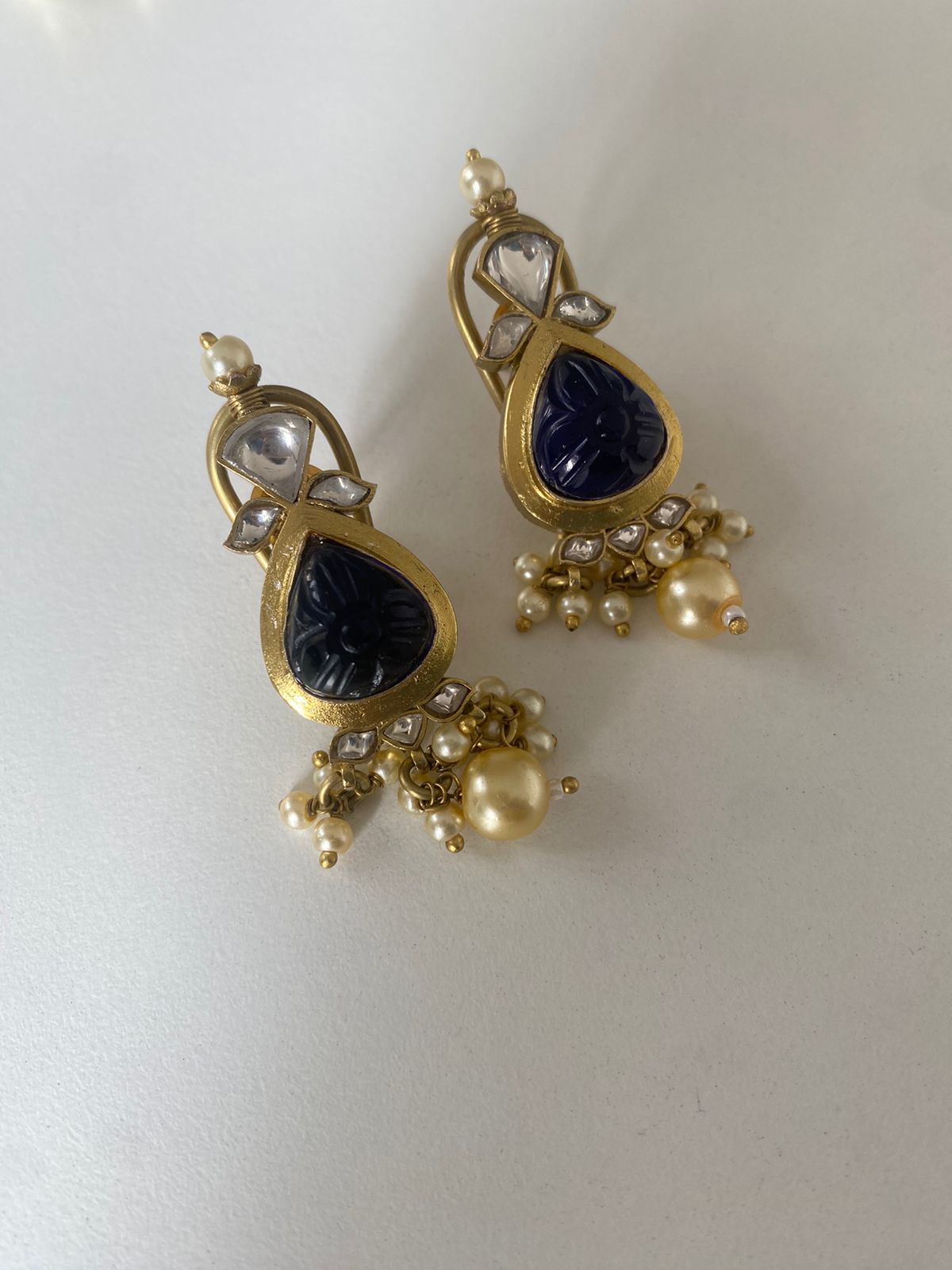Gold plated traditional Indian bridal necklace made in silver and base metal. Comes with a matching pair of earrings.