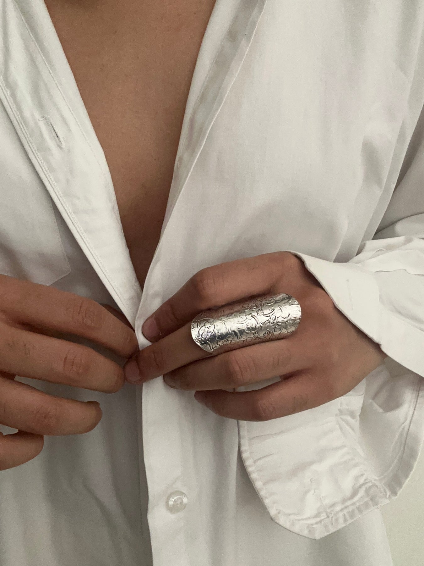 This Spribal ring is expertly crafted from German silver and features a versatile, adjustable design. It is the perfect accessory for any occasion.