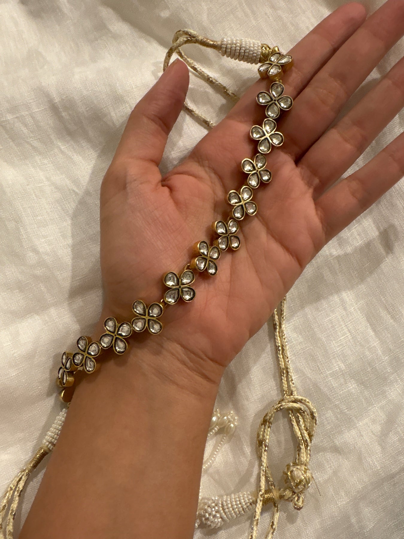 Gold plated necklace , handcrafted in silver and base metal with semi precious stones. Comes with earrings.