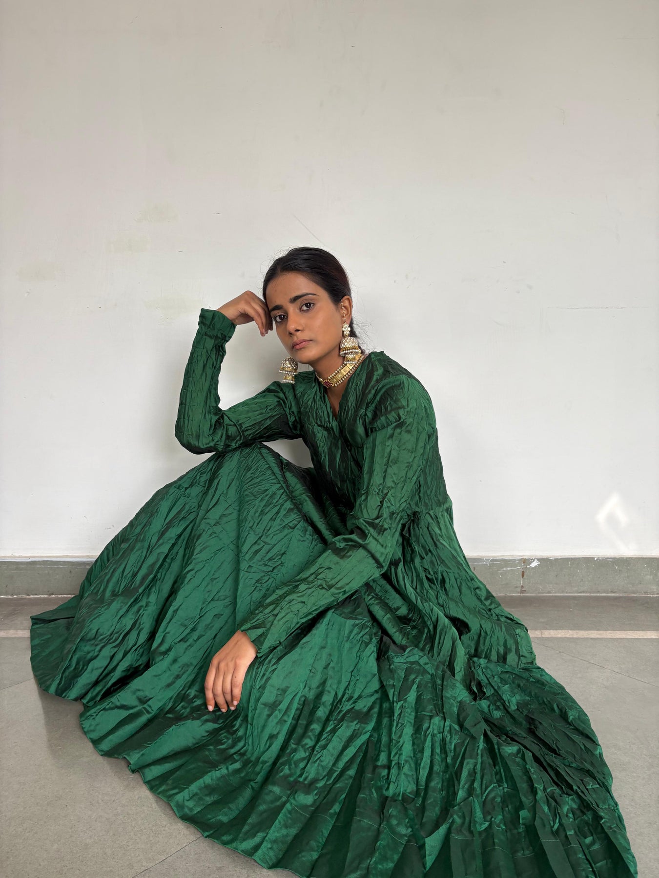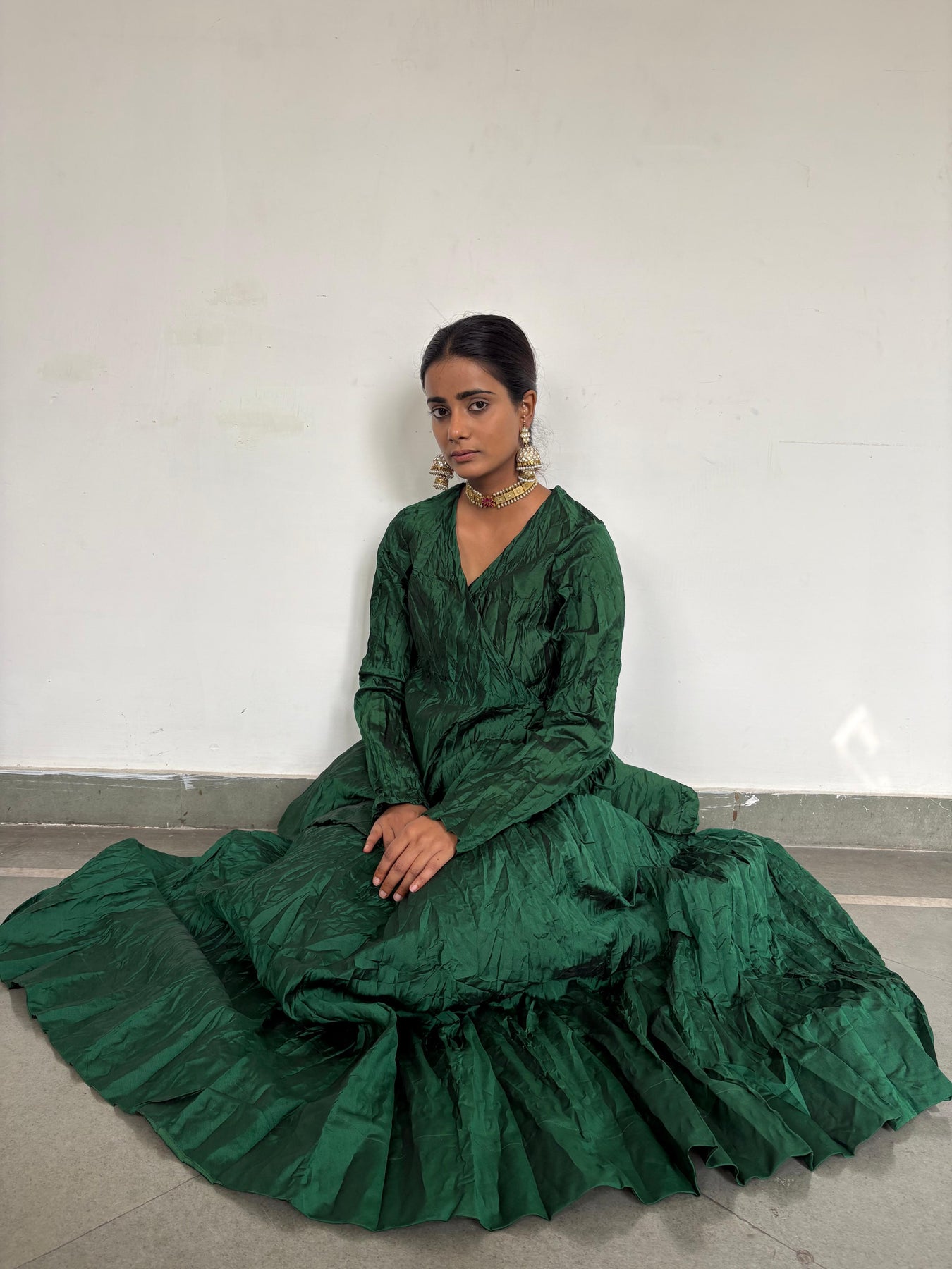 Handcrushed in cotton silk. This classic set of skirt , tie up top and dupatta is a wadrobe essential.