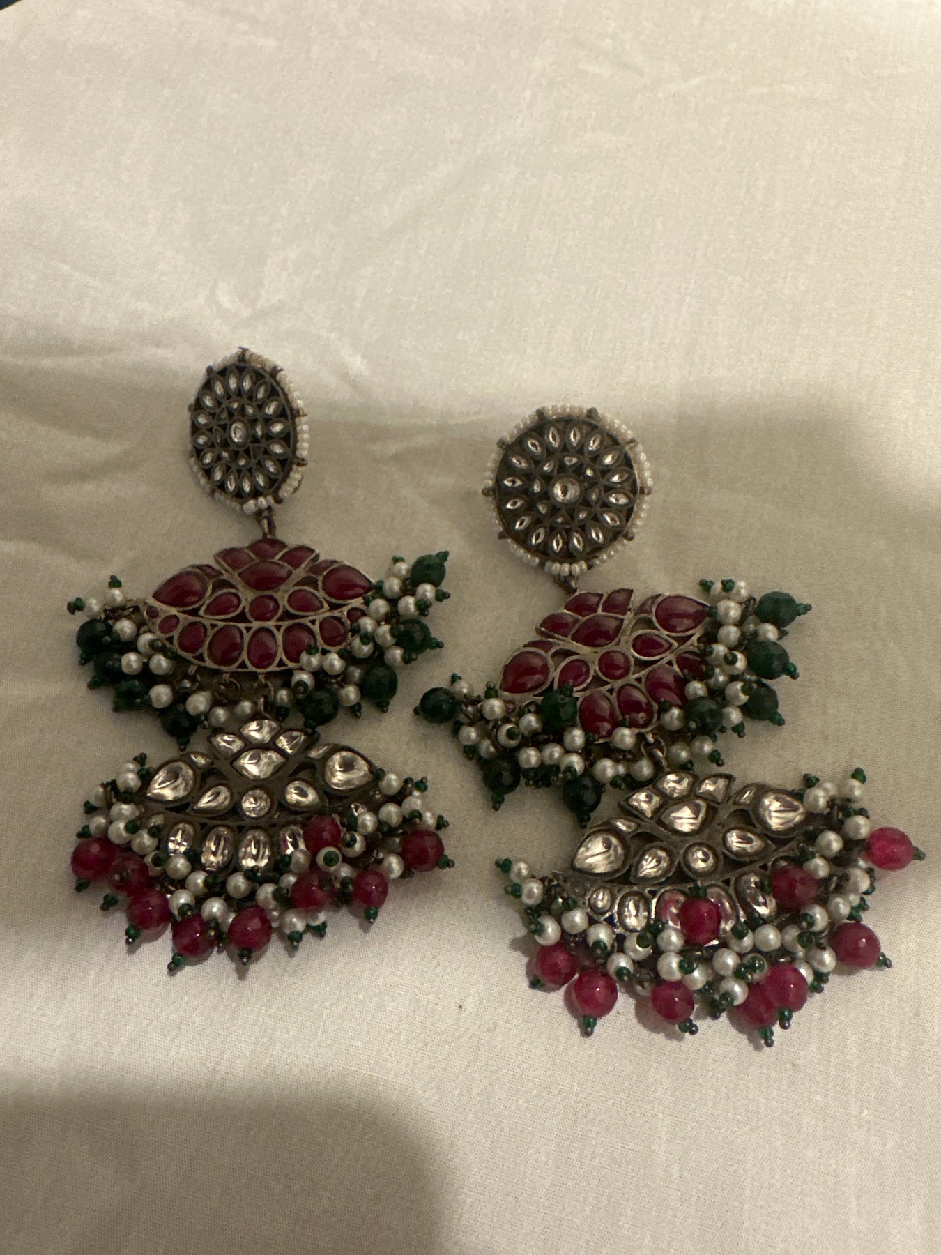 Handcrafted in traditional jadau kundan and finished with a deep black polish, these earrings bring heritage into the now—bold, versatile, and made to be worn beyond weddings, from evenings out to everyday moments.