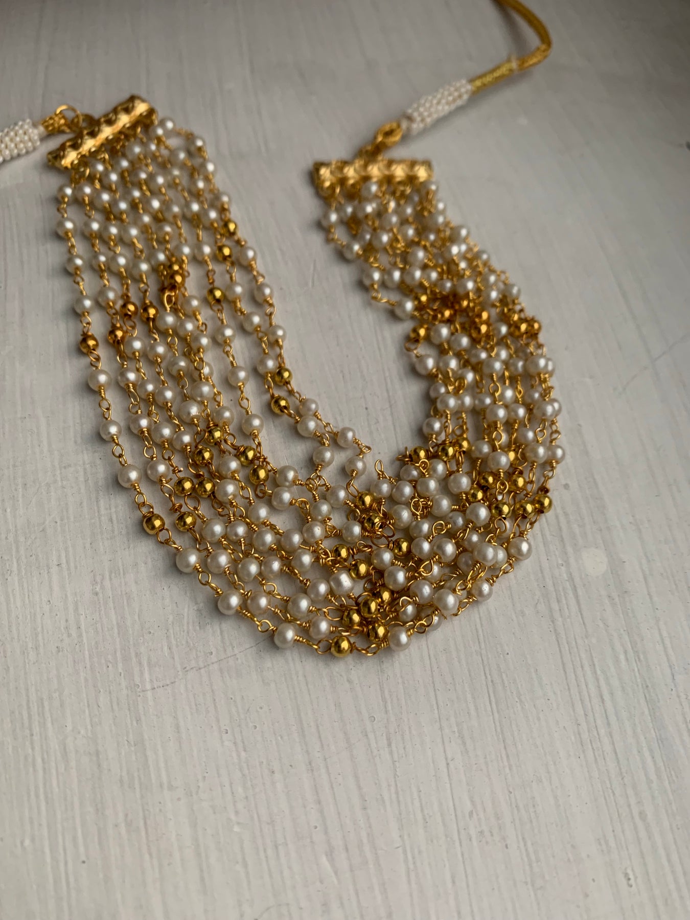 The Rama necklace features elegant pearls and quality metal beads, making it a luxurious addition to any outfit. Its convenient drawstring allows for effortless customisation.