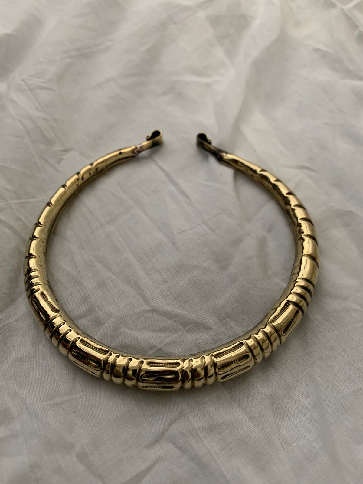 This Tribal trace hasli necklace is expertly crafted from brass and finished in luxurious gold. The perfect accessory for any occasion, this necklace adds a touch of style to any outfit.